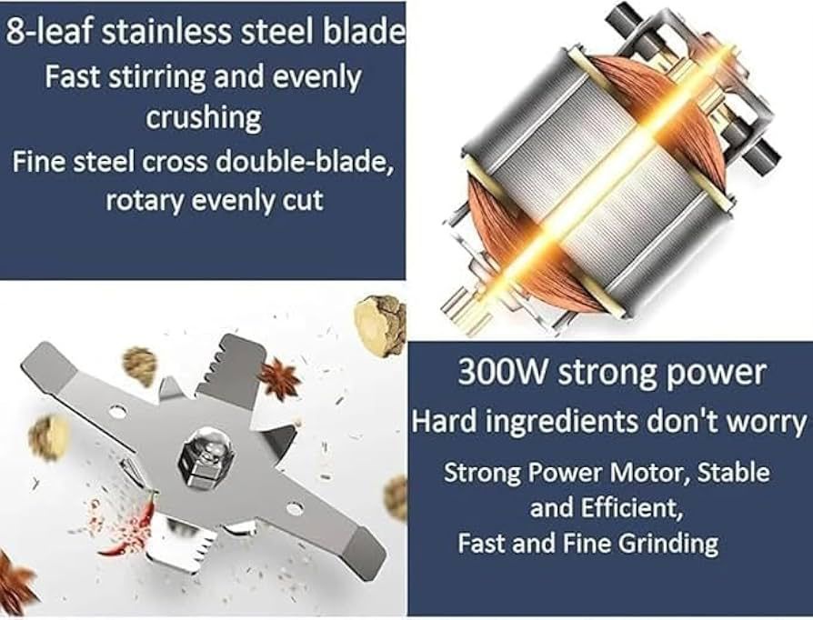 ✅ مزودة بسكين 8 شفرات حادة لطحن ناعم وسريع